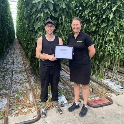 Keen to gain more experience, Mitchell made the switch to capsicums in 2020 with a role at Gourmet Paprika in Parakai. He enjoyed picking and working with the team to carry out crop changes. It was here that he was offered a NZ Apprenticeship in Horticulture (Indoor Crop Production) through Primary ITO.