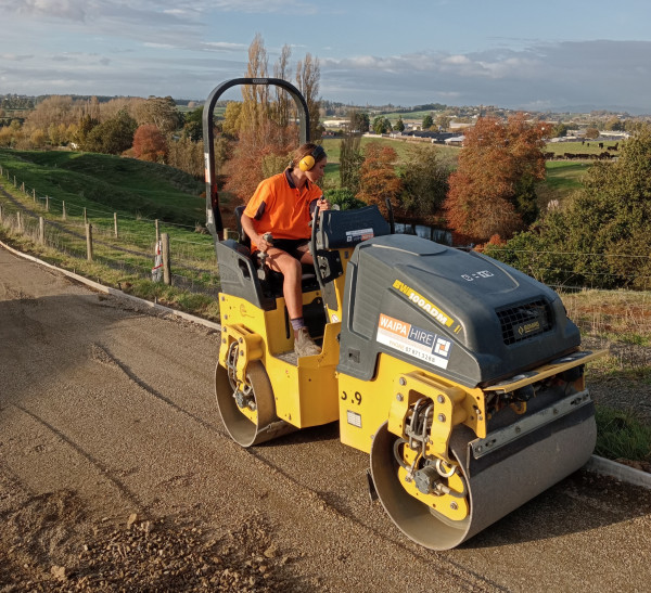 Sarah operating the double drum roller on site