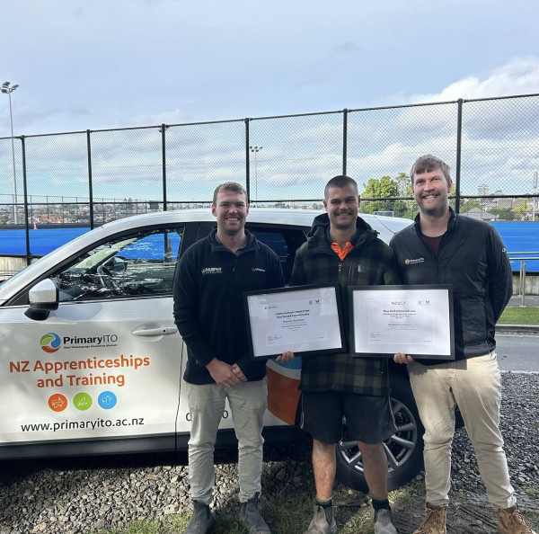 Brad (left) with Qualified Apprentice Max and Primary ITO Training Adviser, Tom