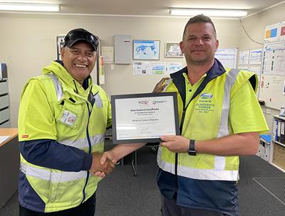 It was an extra special moment for George, who has achieved the DAIRYCRAFT New Zealand Certificate in Distribution Level 3 (Coolstores) through his own hard work and the support of the DAIRYCRAFT team.